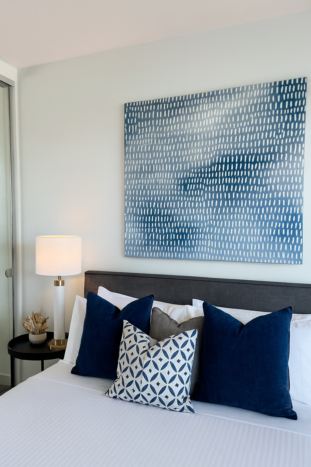 A timeless navy cushion designed to layer beautifully in any interior.